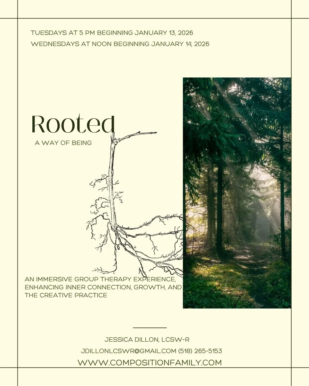 Begin a new year with a new ritual; join Rooted, an immersive group therapy experience. Lets begin by arriving together, allowing our full awareness to meet the wisdom within, and take a collective breath.
